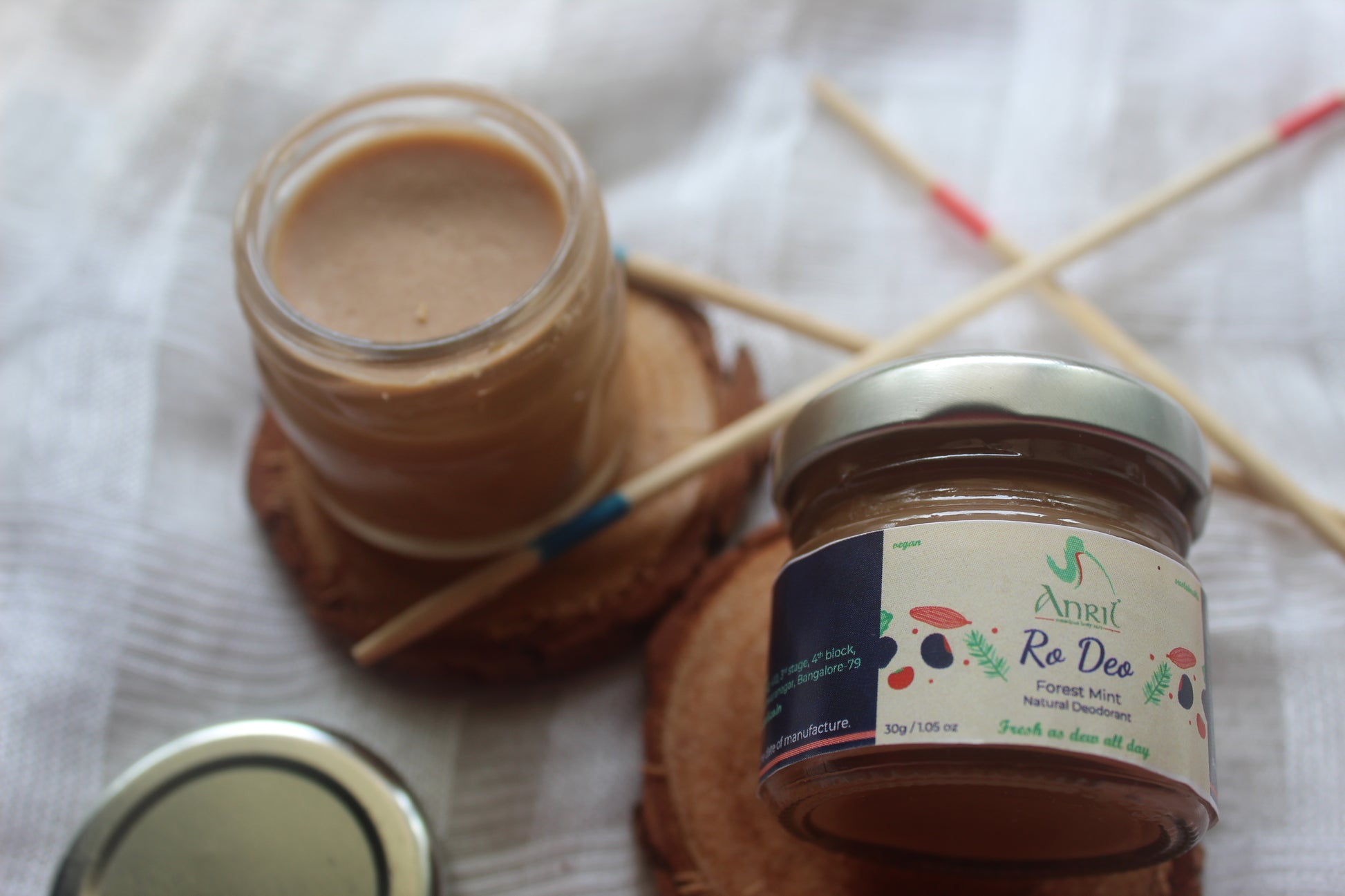 Ingredients: Raw shea&cocoa butter, cold-pressed coconut oil, arrowroot powder, Kaolin clay, French pink clay, essential oils of Rosemary, peppermint and Fir needle.